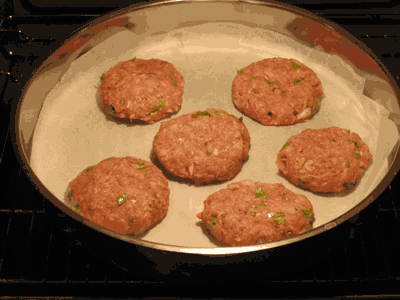 • Πλάθουμε το μείγμα σε κεφτέδες και τα βάζουμε σε ένα ταψάκι στο οποίο έχουμε τοποθετήσει αντικολλητικό χαρτί.